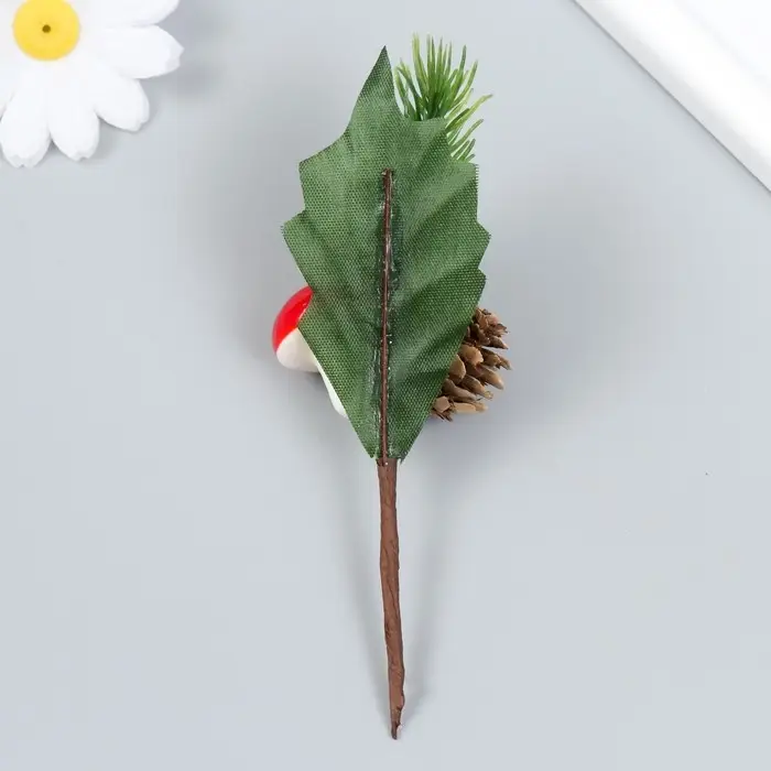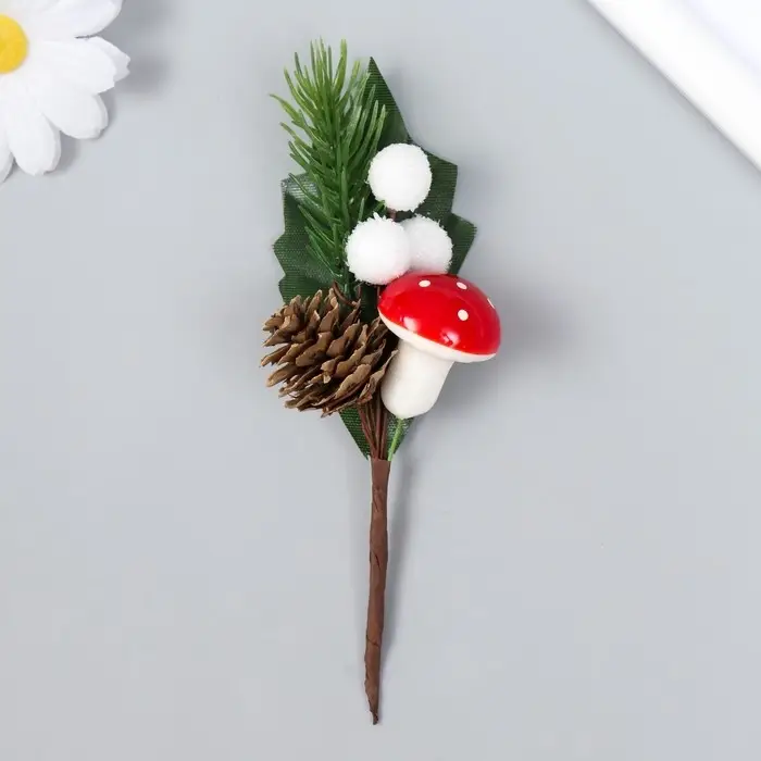 Декор для творчества «Веточка ели со снегом и шишкой» 13 см