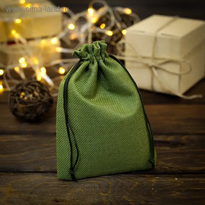 Мешочек подарочный из холщи, зелёный, 13 х 18 см
