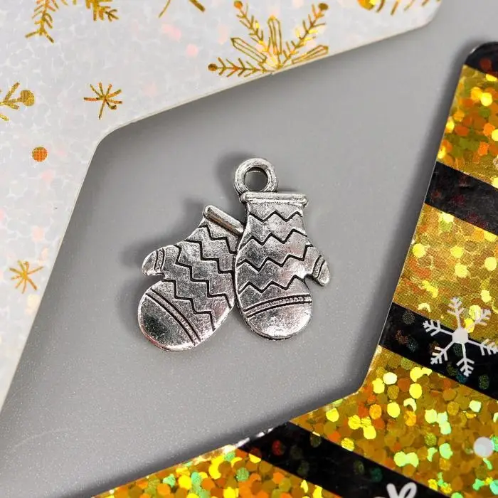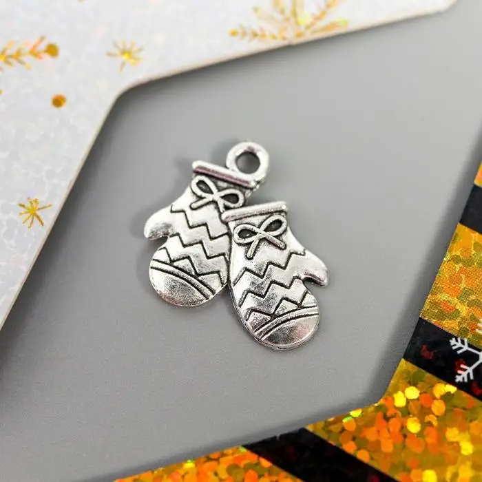 Декор для творчества металл "Варежки" серебро 1,7х1,6 см