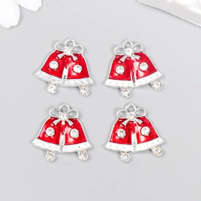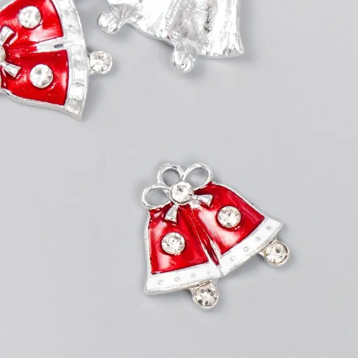 Декор для творчества металл, эмаль, страза "Колокольчики новогодние" 2х2,2 см