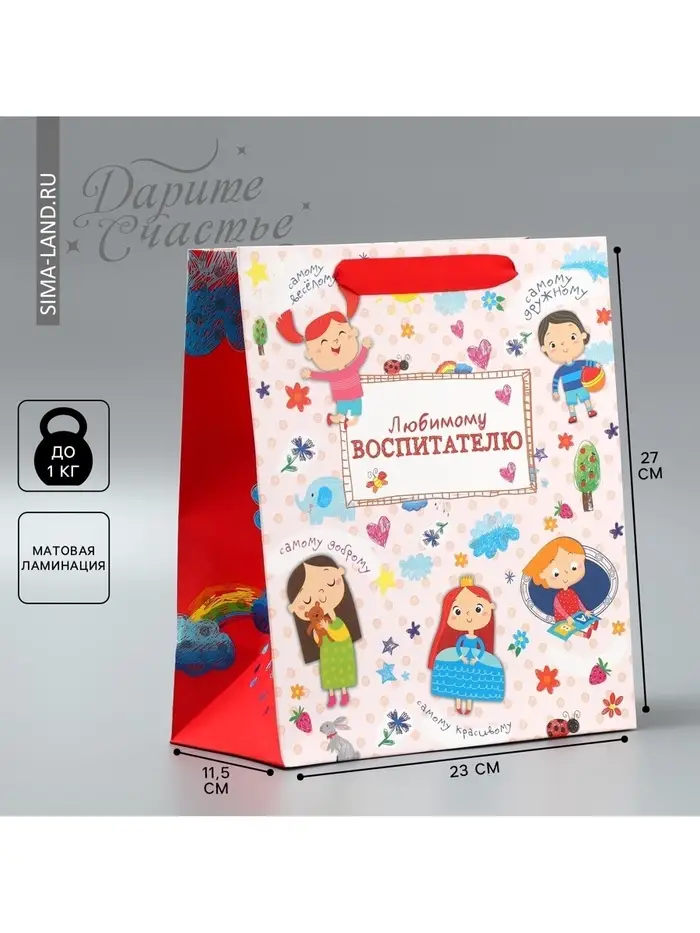 Пакет подарочный ламинированный, упаковка, «Любимому воспитателю», ML 27 х 23 х 11.5 см