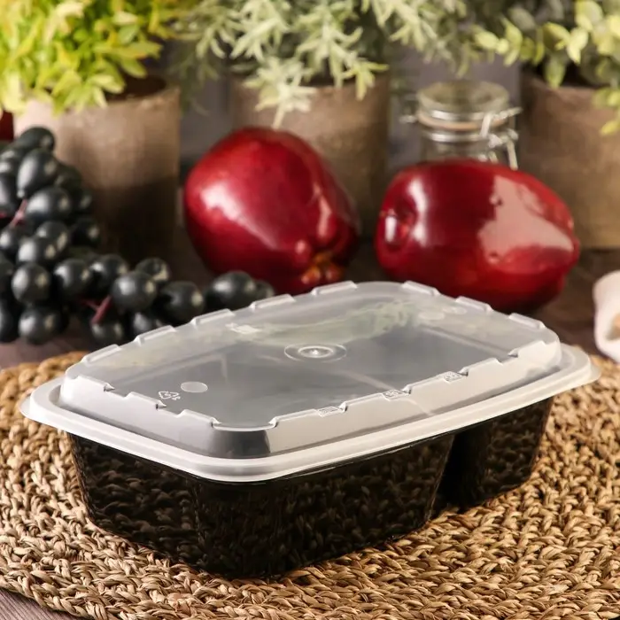 Контейнер одноразовый с крышкой, пластик, 830 мл, 2 секции, чёрный