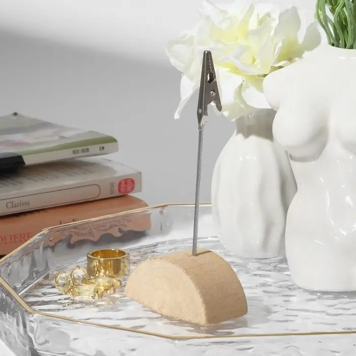 Держатель для ценника можно расположить на любой горизонтальной поверхности: на полке витрины, стойке с кассой и т. д. Чтобы установить ценник, достаточно вставить его в металлический зажим. С таким держателем вносить коррективы в раскладку можно легко и быстро.