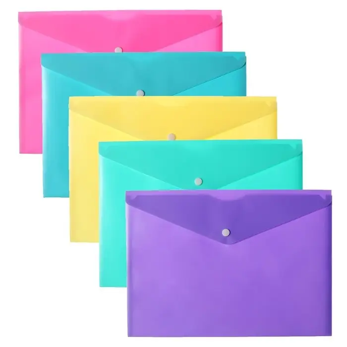 Набор папок-конвертов на кнопке 10 штук, А4, 180 мкм, Calligrata Office, полупрозрачные, микс