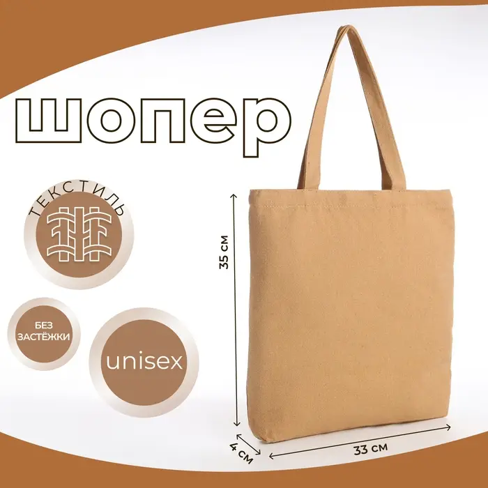Сумка-шопер без застёжки, из текстиля, цвет бежевый
