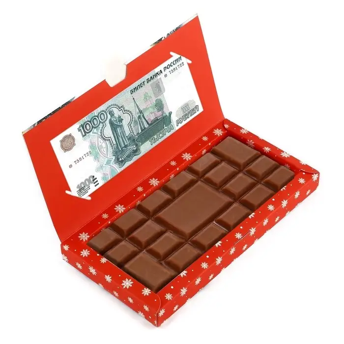 Коробка для шоколада с местом для денег «Снежный городок», 20 х 2 х 10 см