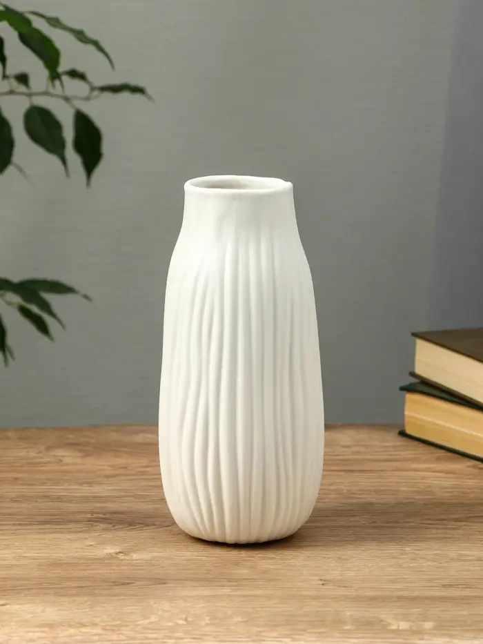 Ваза керамика настольная "Флоранс" волны, 22х9х6,5 см, белый