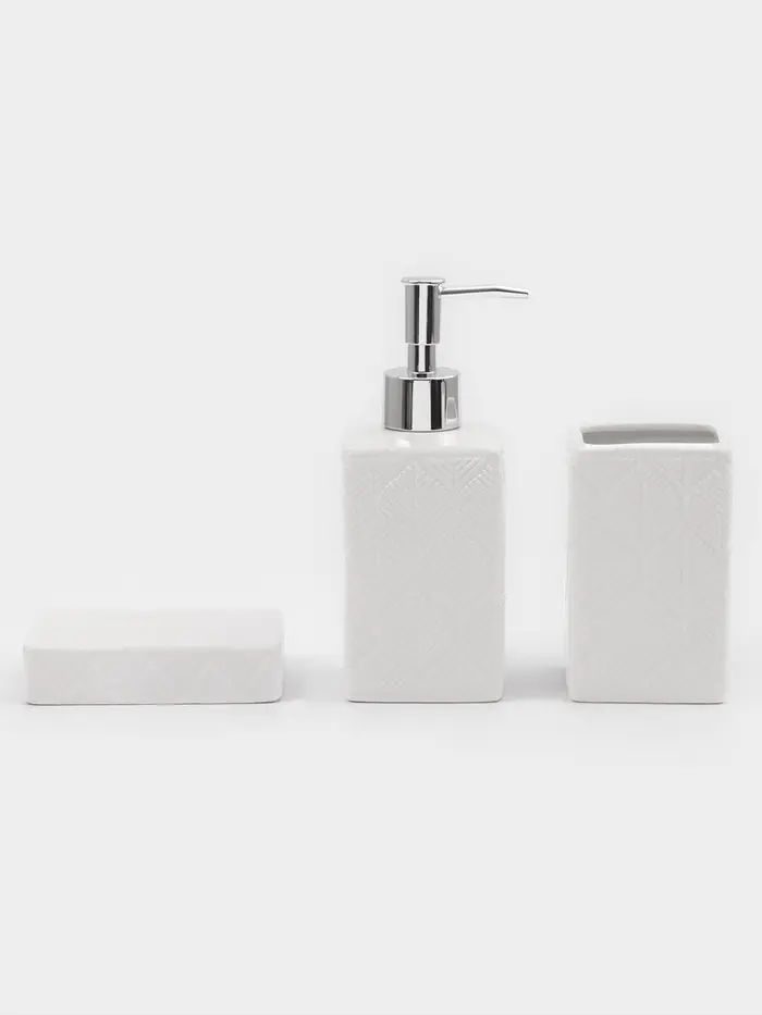 Набор для ванной "Лепесток", 3 предмета (дозатор для мыла, стакан, мыльница), цвет белый