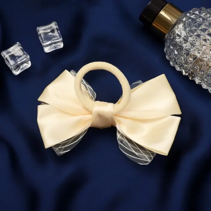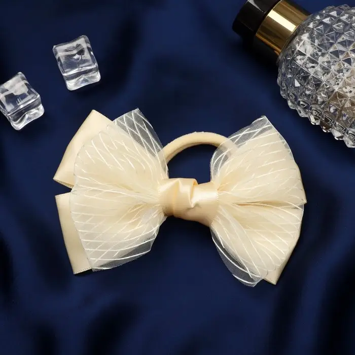 Резинка для волос бант "Школьница" классика двойной полоски, 11х7 см, бежевый