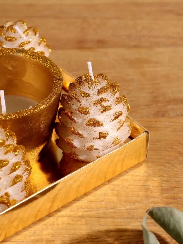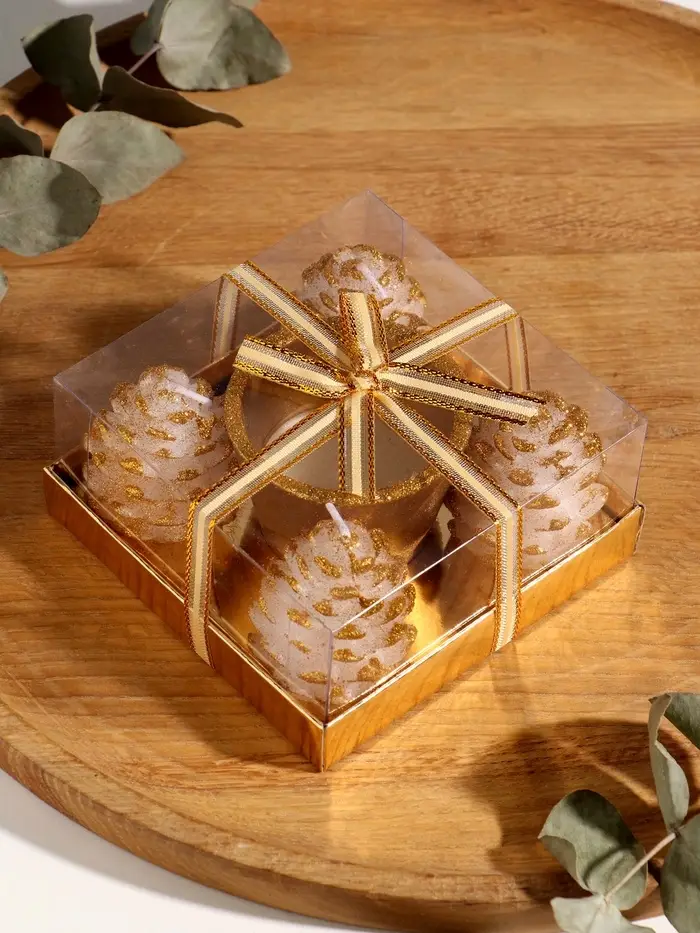 Набор свечей "Шишки и подсвечник" 5 шт 11,5х11,5х5,5 см