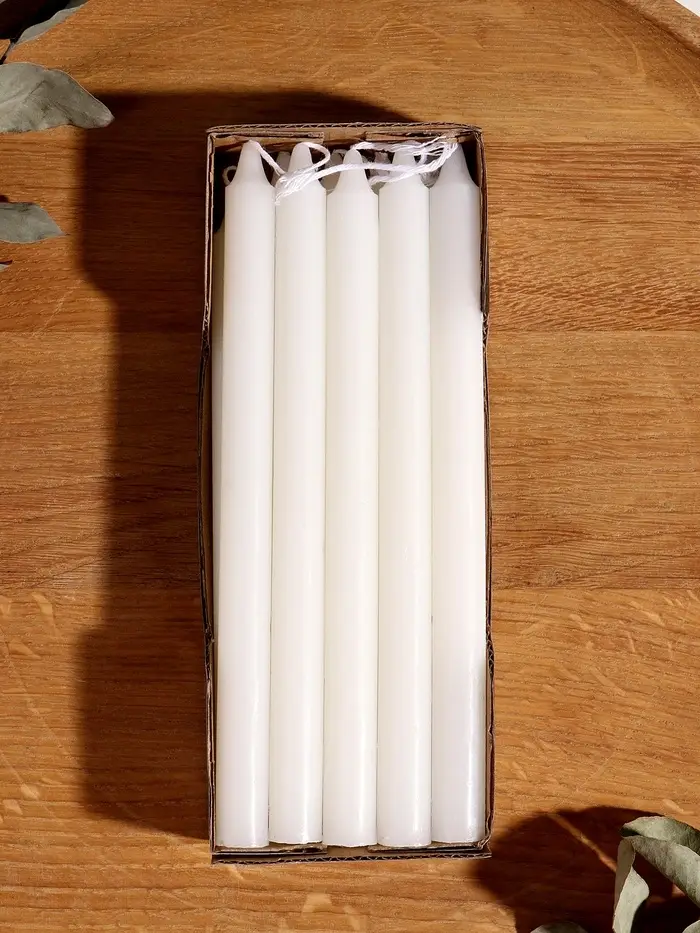 Свечи столовые хозяйственные "Белые" набор 10 шт d=1,5 см h=19 см 7,5х3х19,5 см