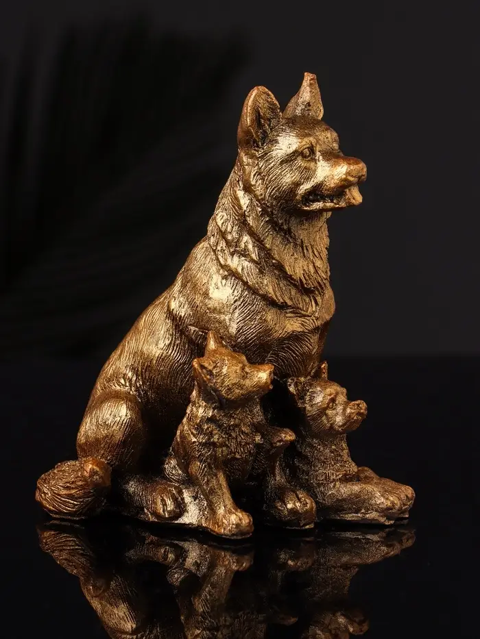 Фигура "Овчарка с щенками" 10х7 см,бронза