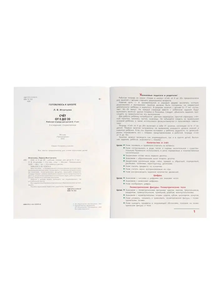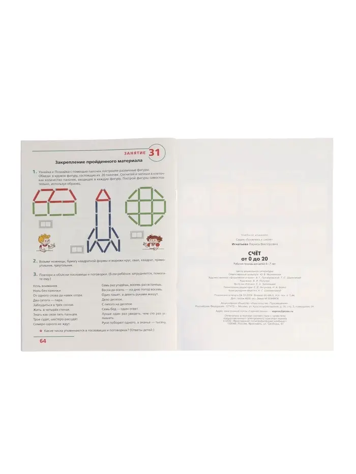 "Счет от 0 до 20" Рабочая тетрадь для детей 6-7 лет 2024