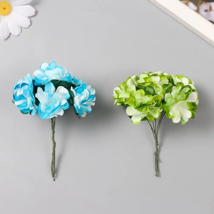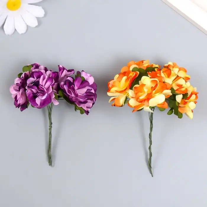 Декор для творчества "Пестрые цветы" МИКС, 9 см (1 набор=1 букету) в букете 6 цветков