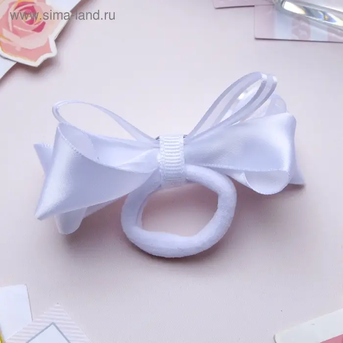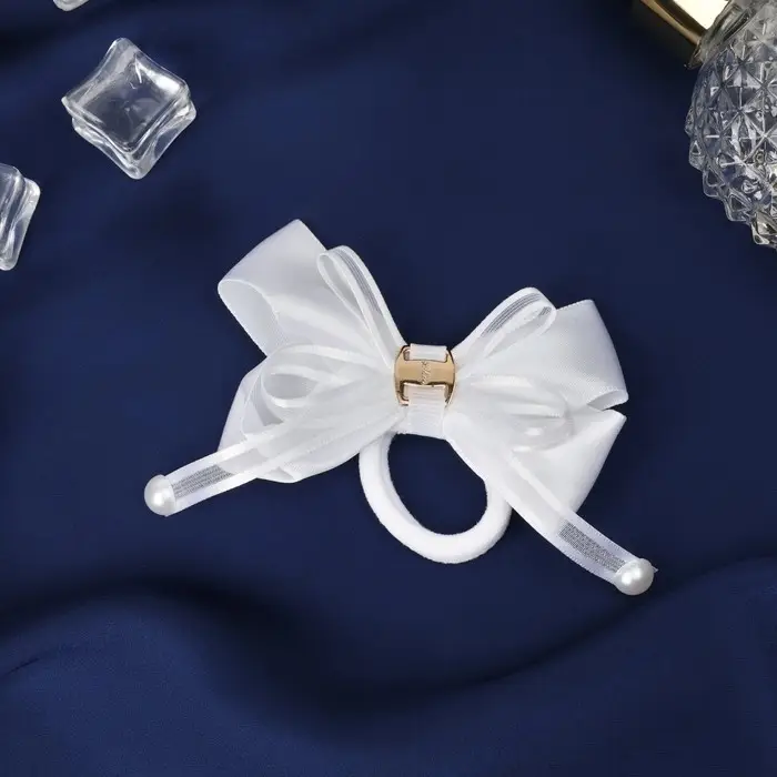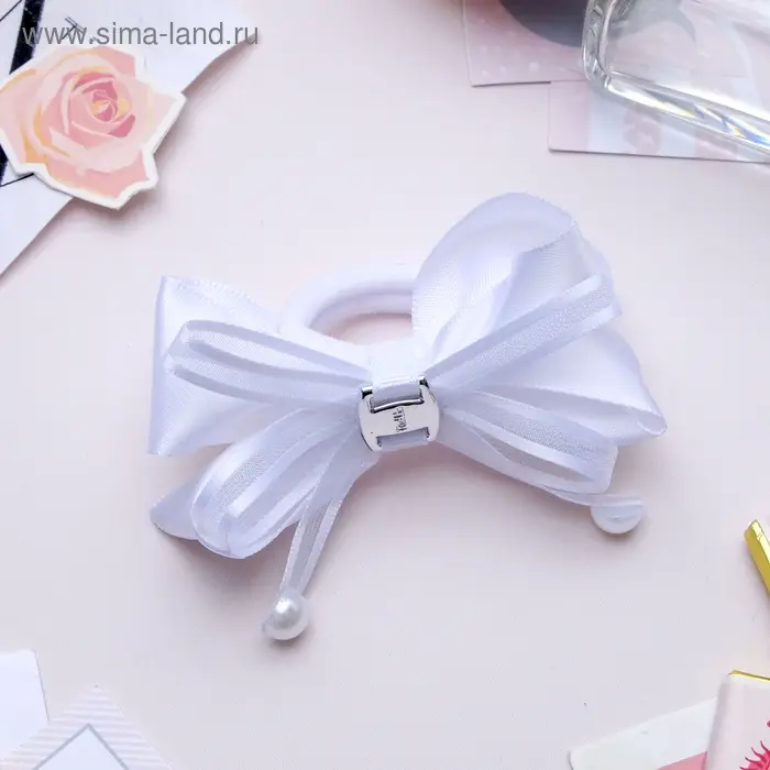 Резинка для волос "Школьница" бант жемчужинки на лентах, 7,5 см, белый