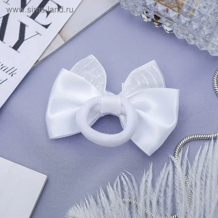 Резинка для волос "Школьница" бант полосы стразы, 6,5 см, белый