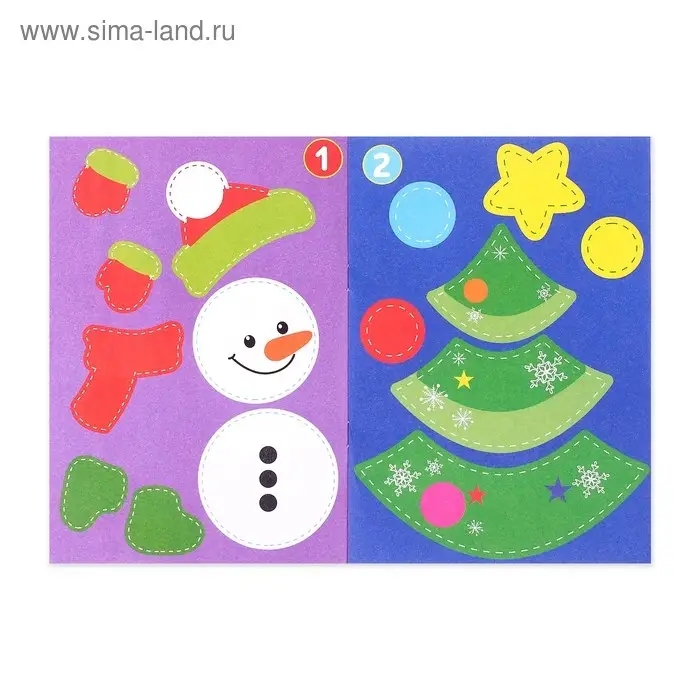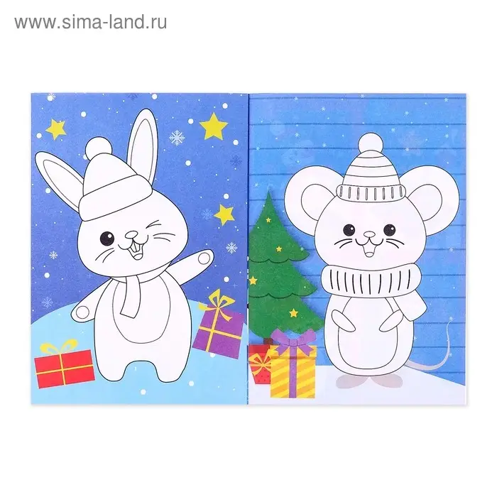 С «Новогодними аппликациями» малыш сделает праздничные открытки для семьи и друзей. Ребёнок вырежет и раскрасит фигуры снеговика, мышки и зайца, напишет послания и порадует близких яркой зимней карточкой.