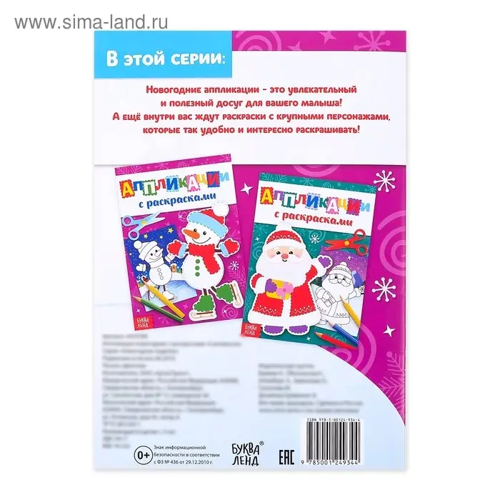Аппликации с раскрасками «Снеговичок», 20 стр.