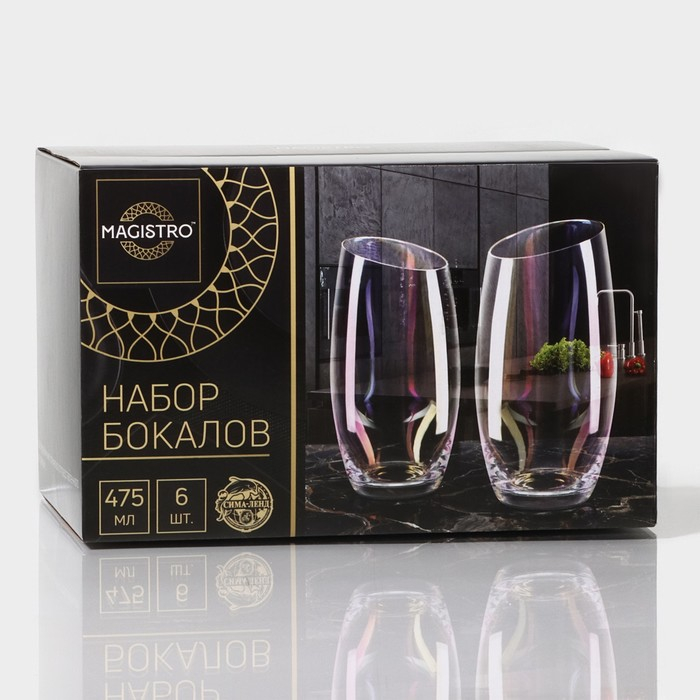 Набор стаканов стеклянных Magistro «Иллюзия», 475 мл, 8×15,3 см, 6 шт, цвет перламутровый