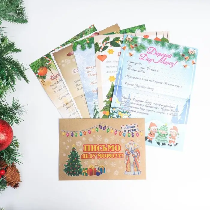 Письмо Деду Морозу "Новогоднее - 1" с конвертом крафт, МИКС