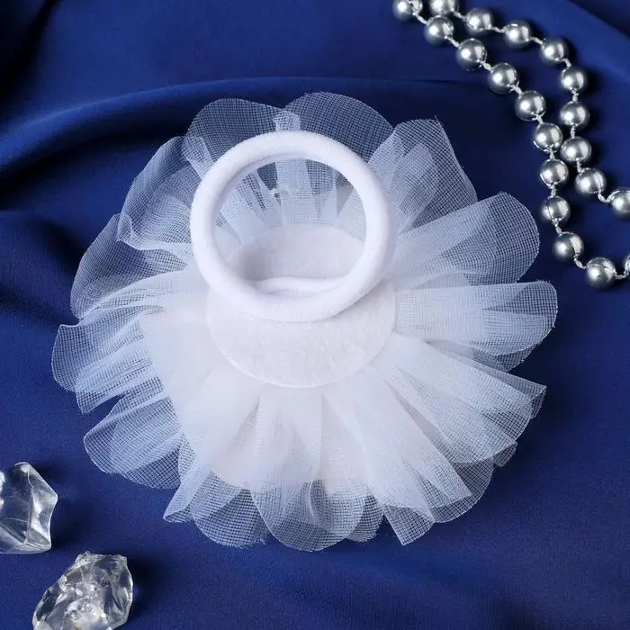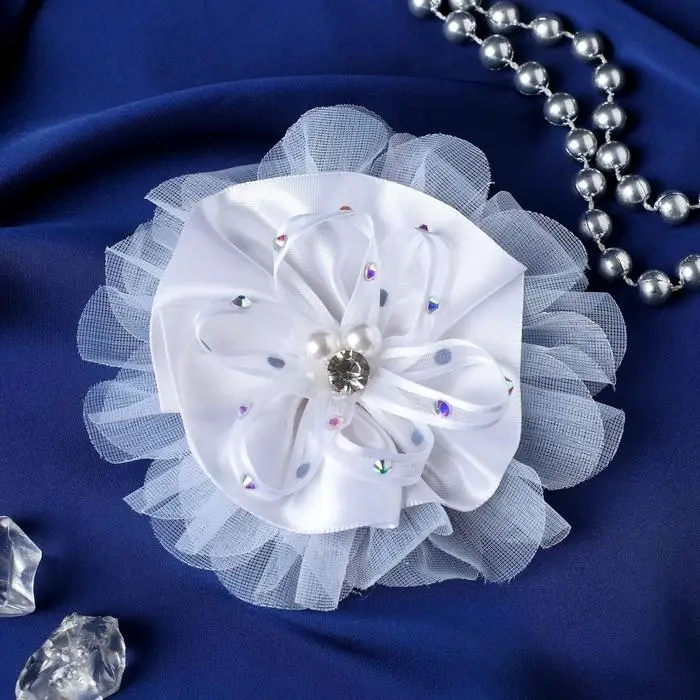 Резинка для волос бант "Школьница" пышная розочка с бусинками, d-10 см, белый