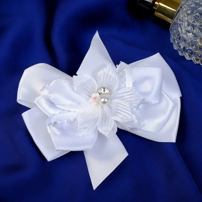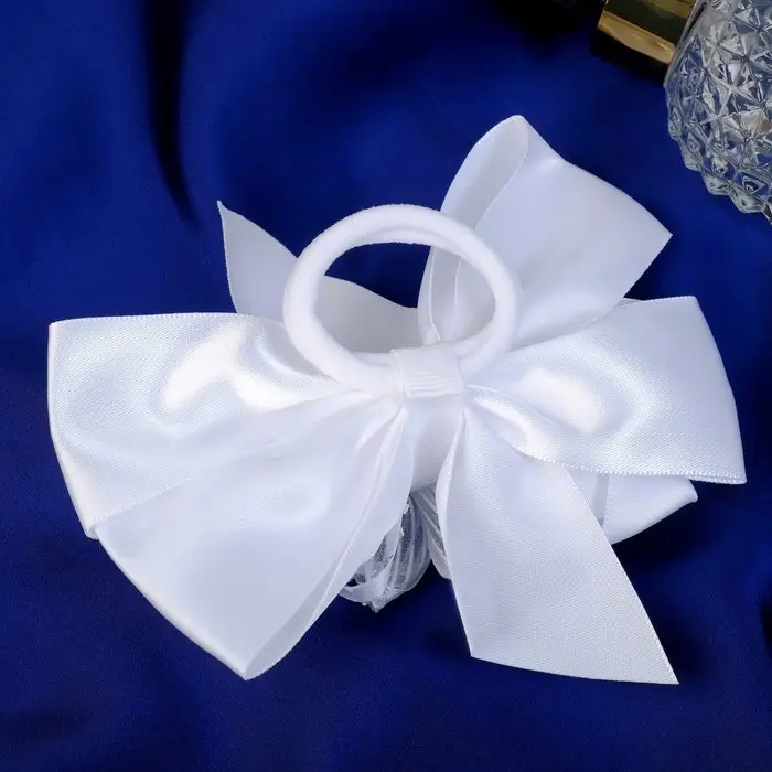 Резинка для волос "Школьница" бант цветок бусина полосы, 12х8 см, белый