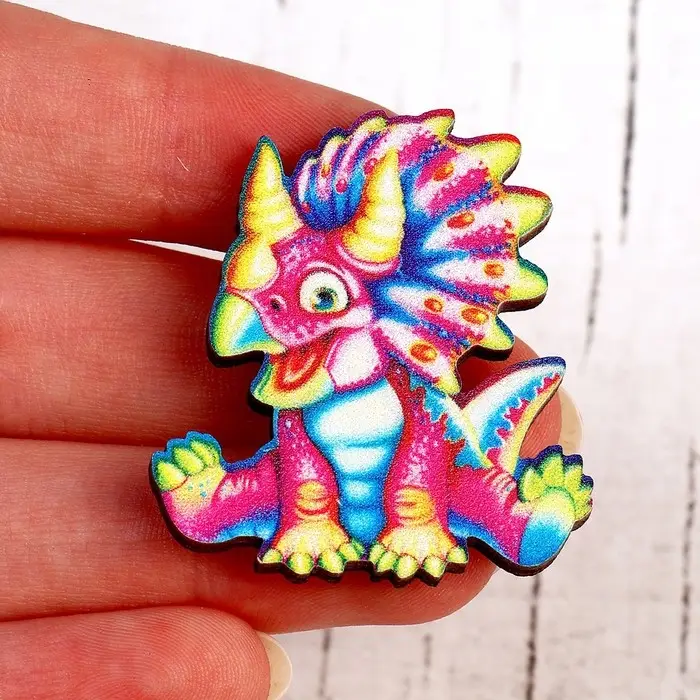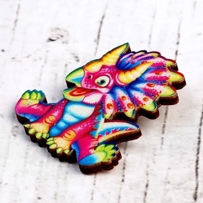 Деревянный значок «Трицератопс»