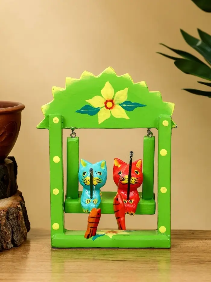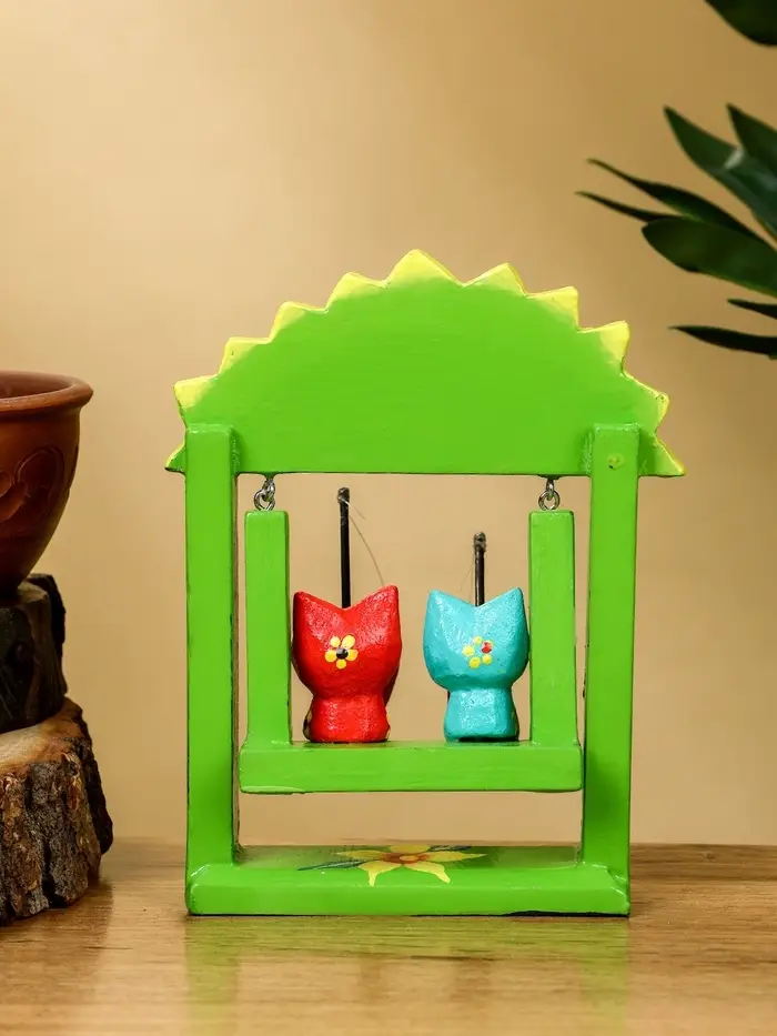 Сувенир "Котята на качелях" дерево 10х3,5х15 см, цв. зелёный