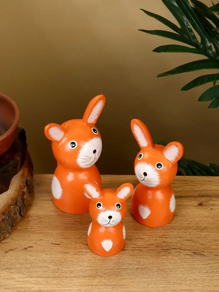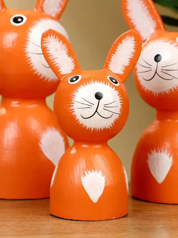 Набор сувенирный «Зайки», h=15 см, h=13 см, h=10 см, дерево, оранжевый