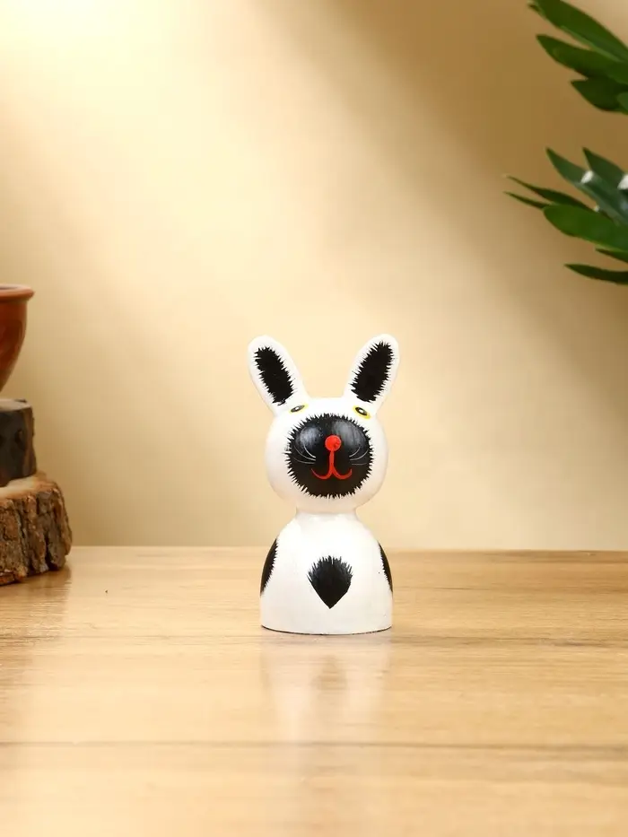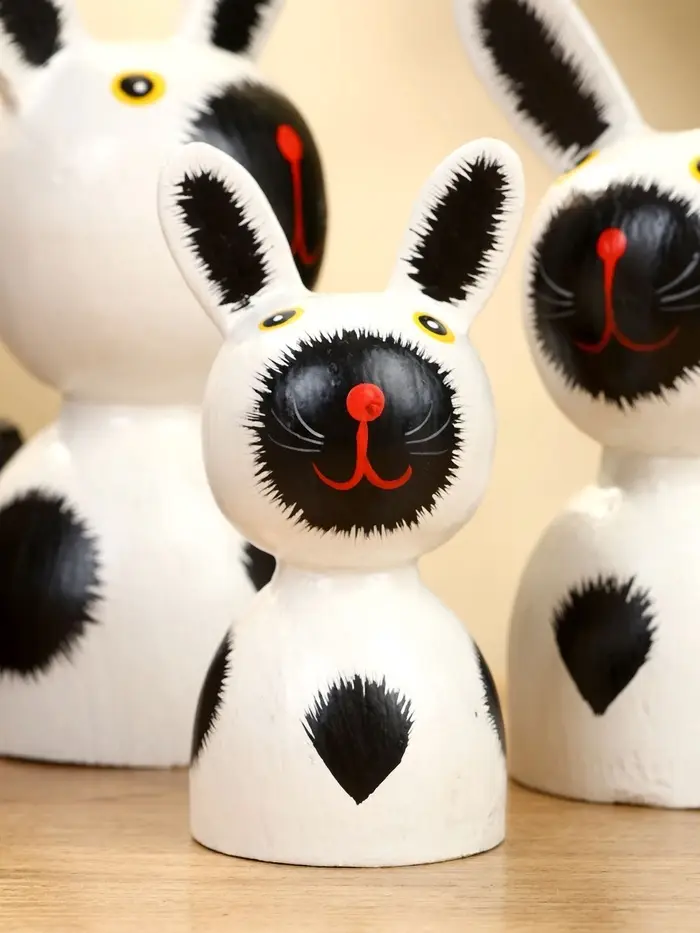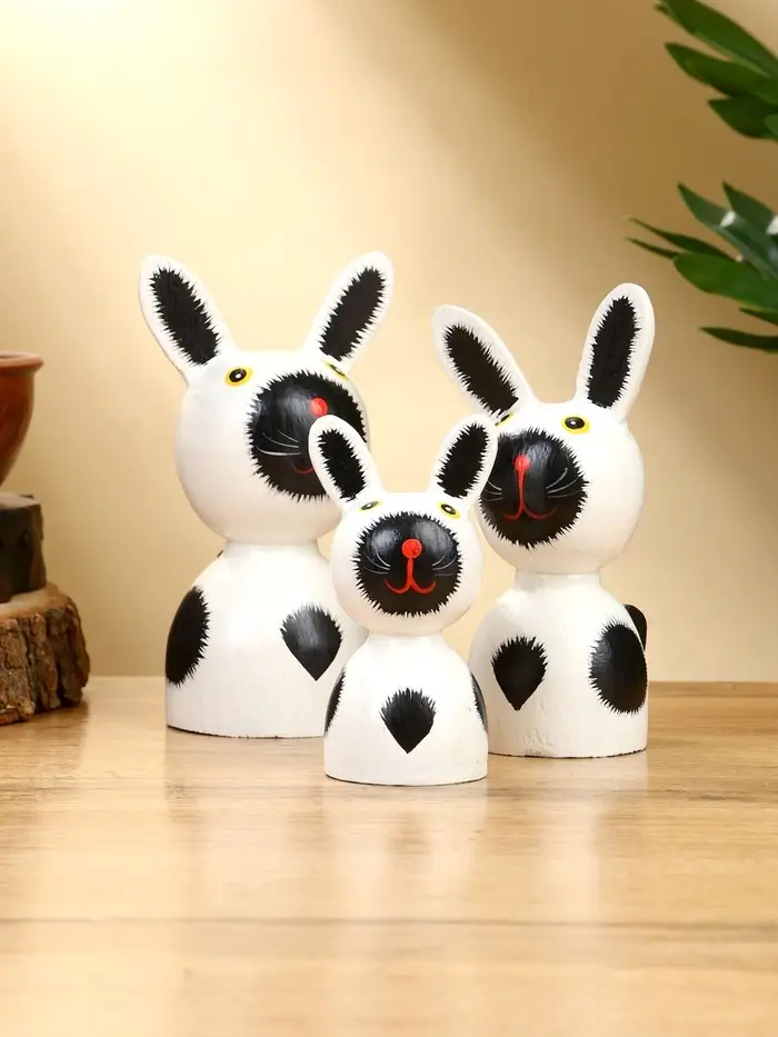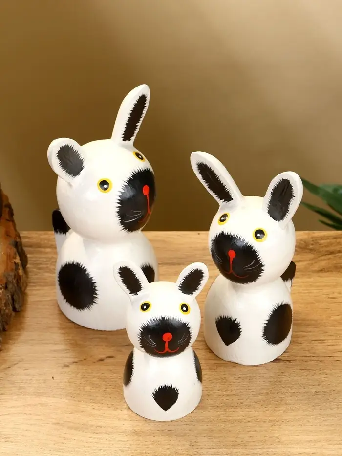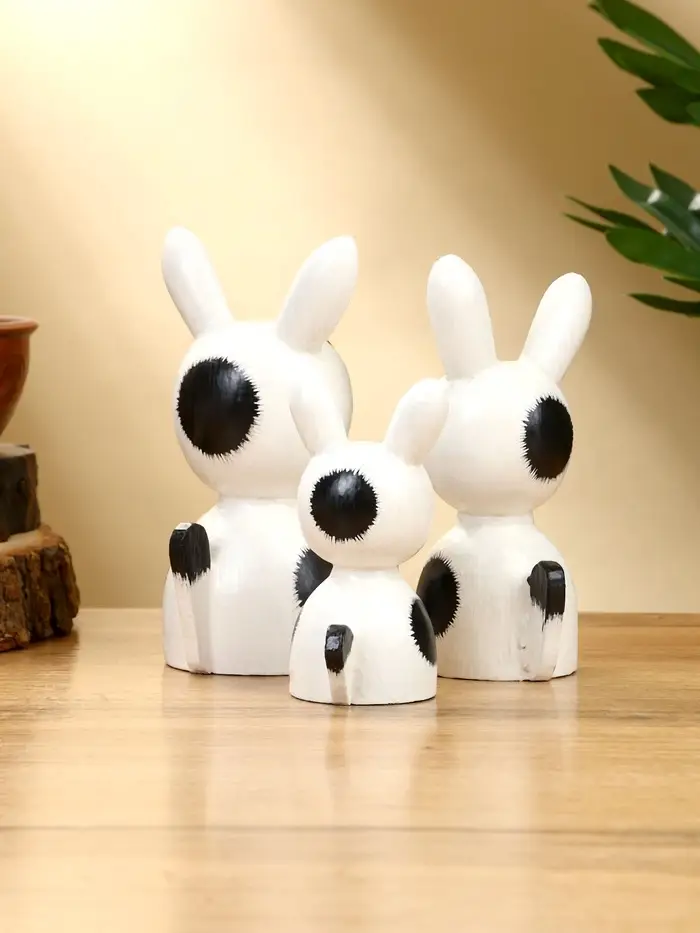 Набор сувенирный "Зайки" дерево H 14, 12, 9 см, цв. бело-чёрный
