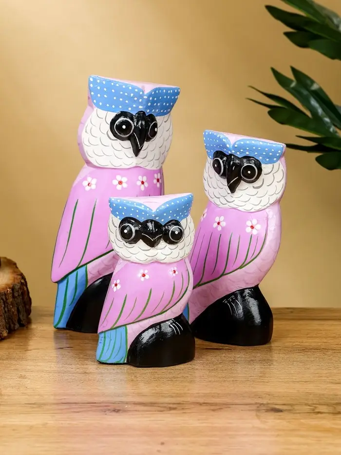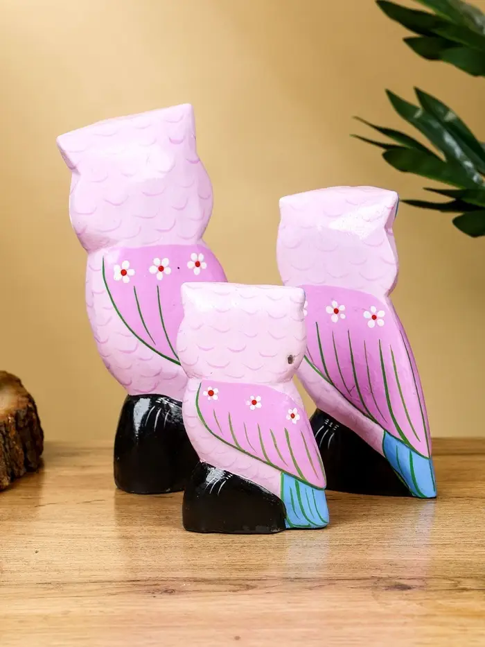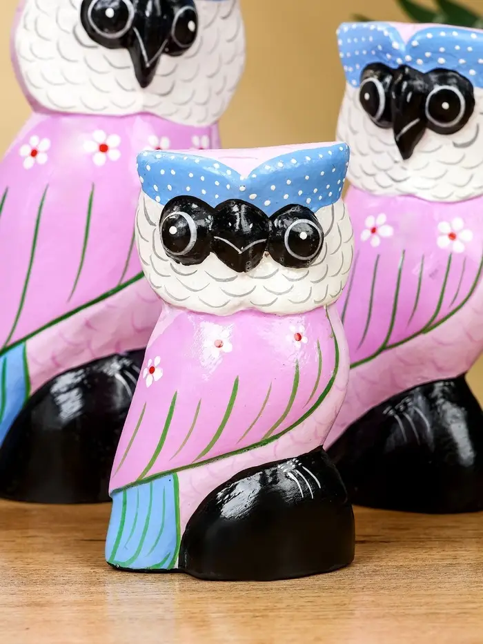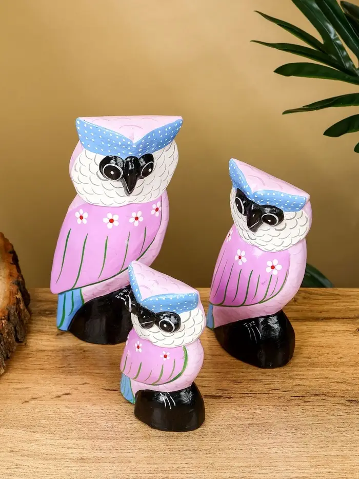 Набор сувенирный «Совы», h=17 см, h=14.5 см, h=11 см, дерево, сиреневый