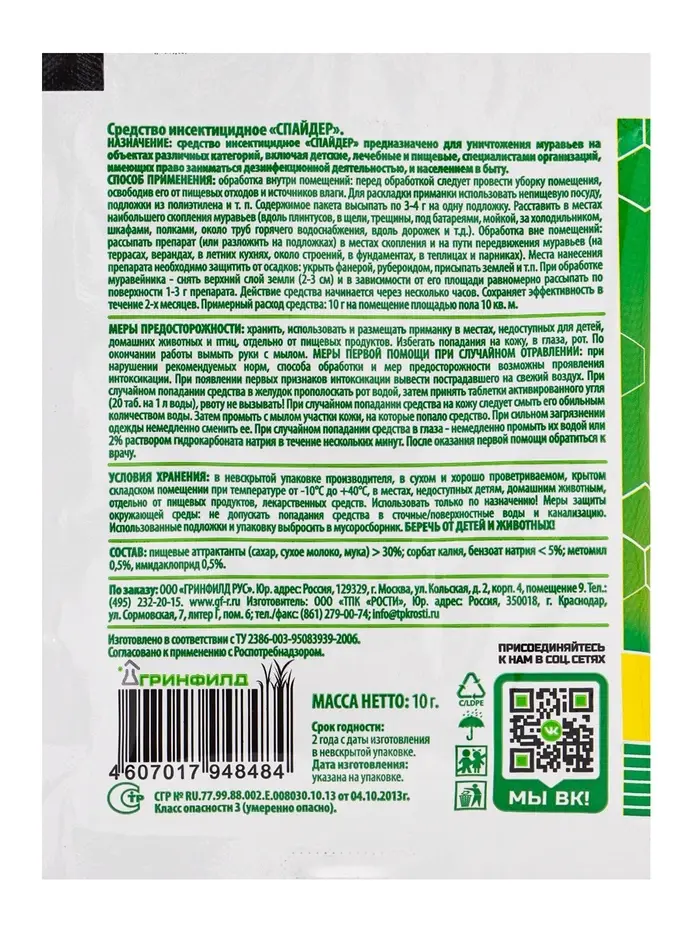 Тайга гранулы от муравьев 10 г.