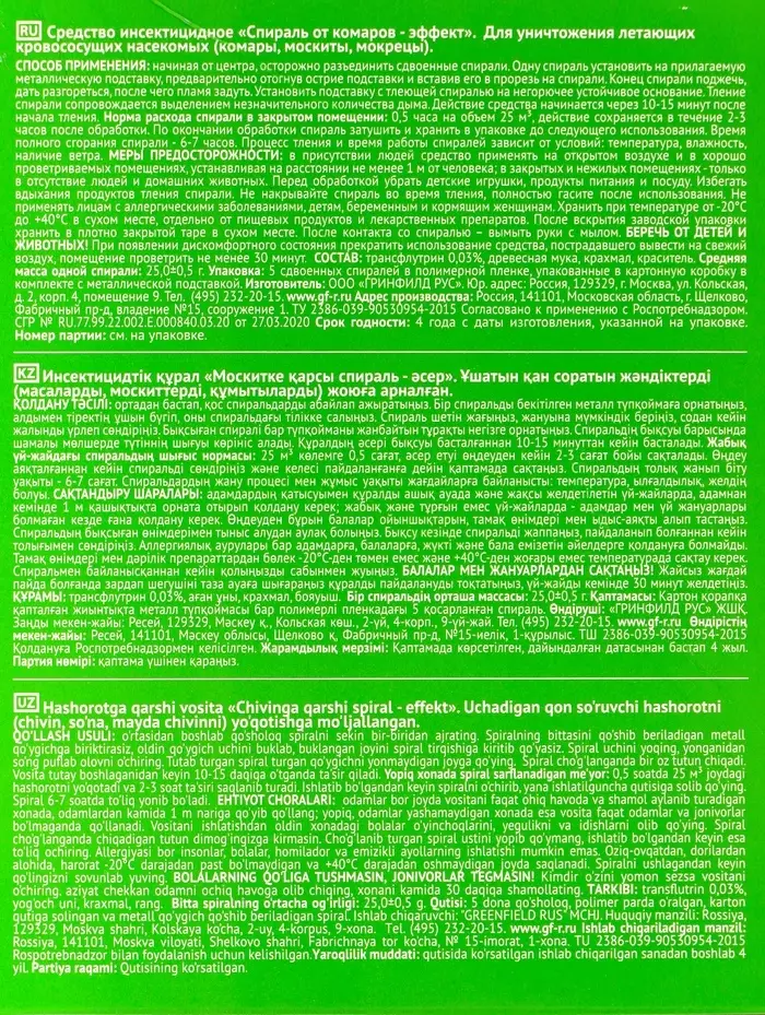 Тайга спирали от комаров угольные ХХL 10 шт. в упаковке