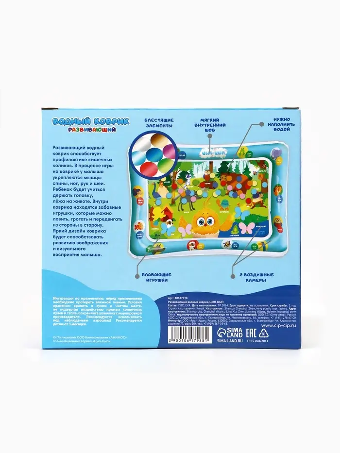 Развивающий водный коврик «Животные», 80x50 см, ЦЫП-ЦЫП