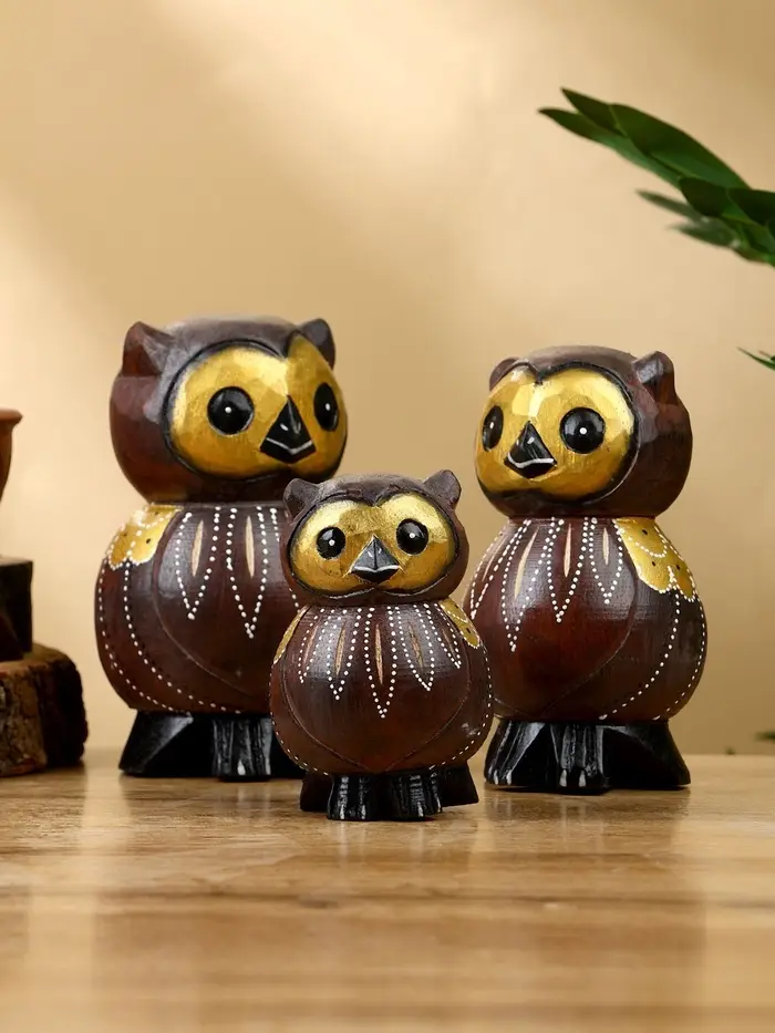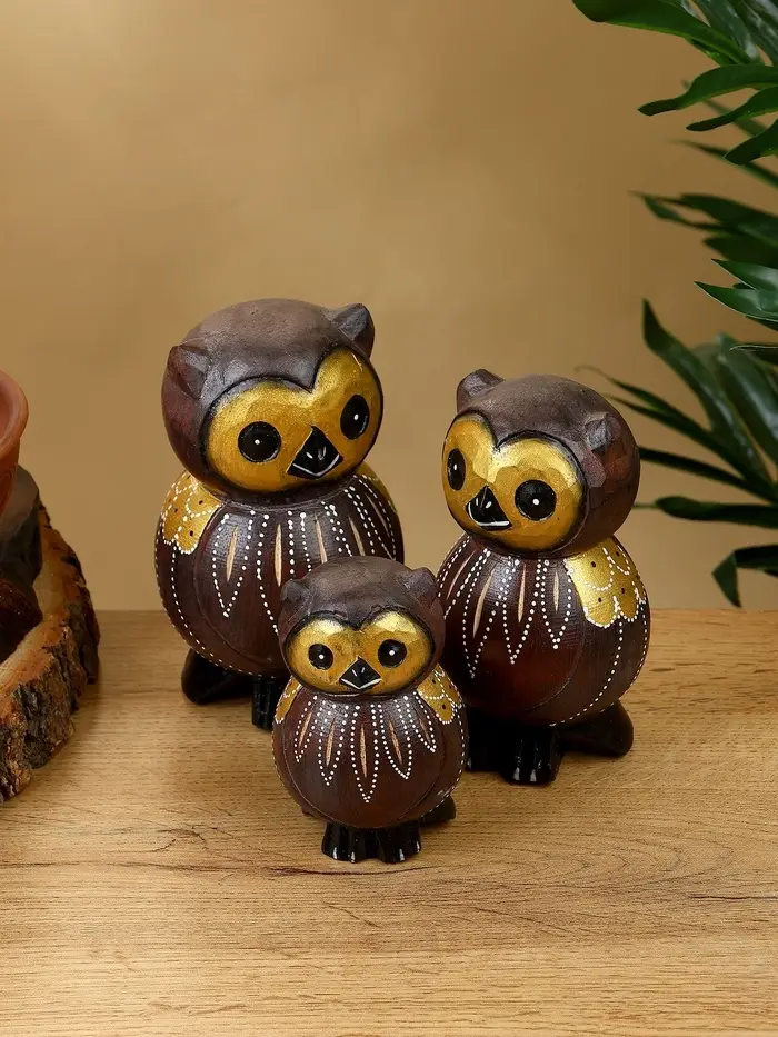 Набор сувенирный "Совята" дерево H 14, 12, 10 см, цв. коричневый