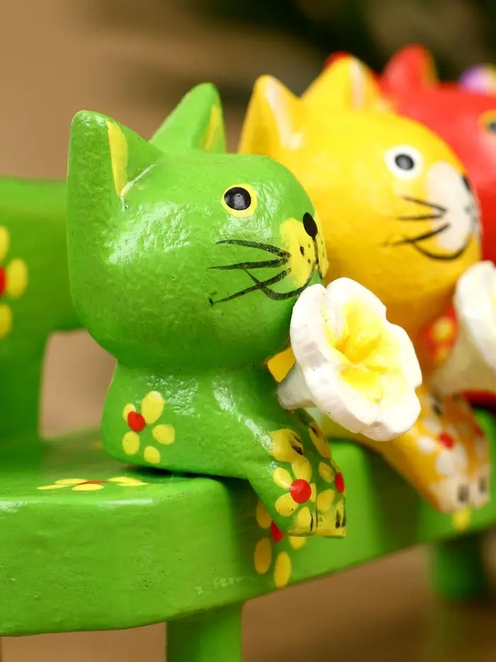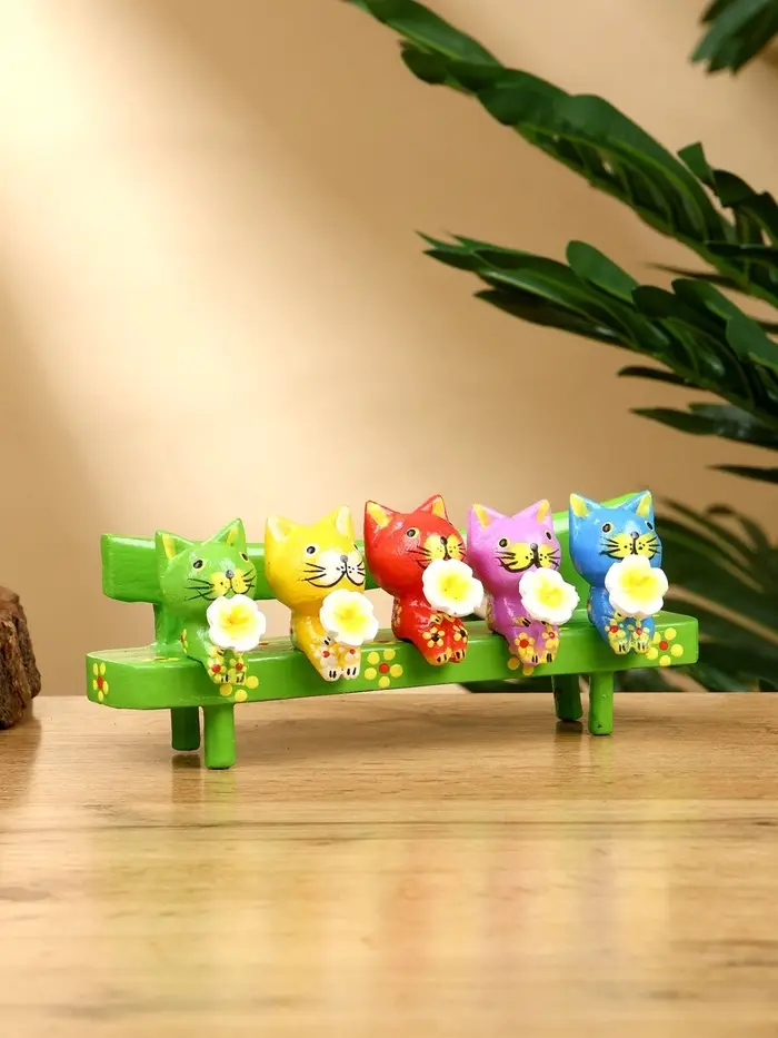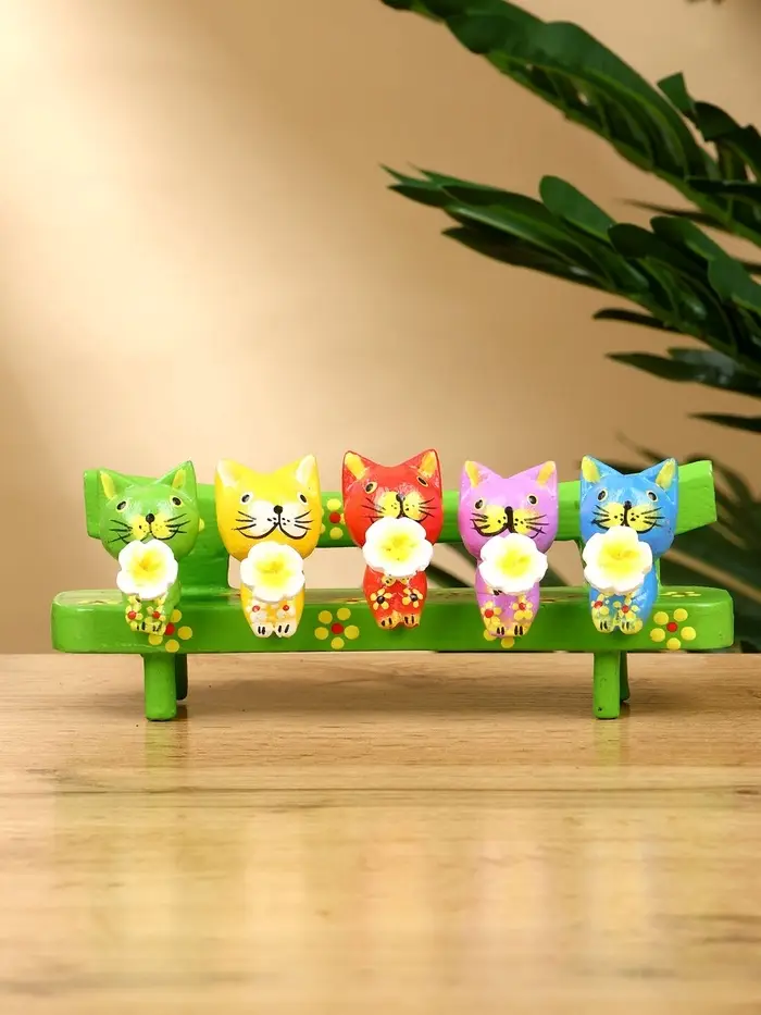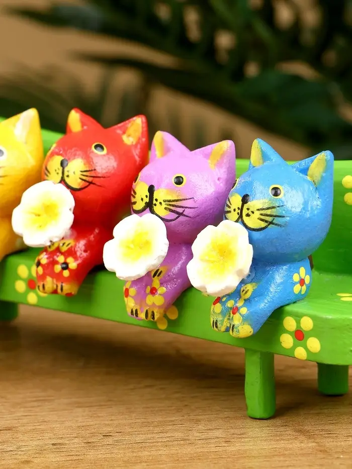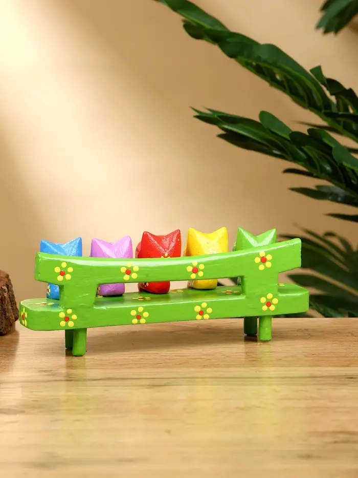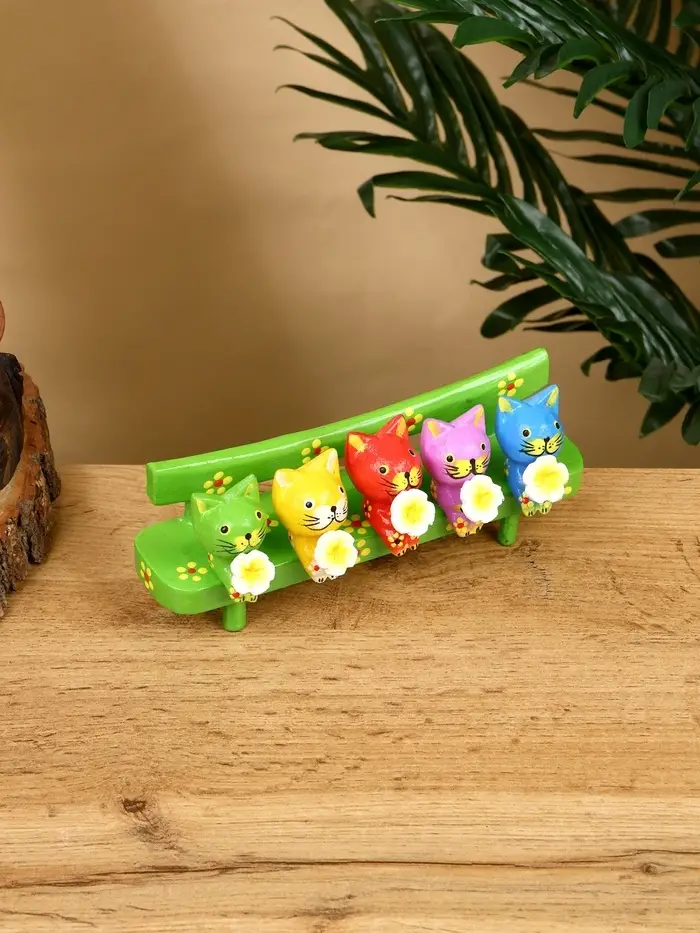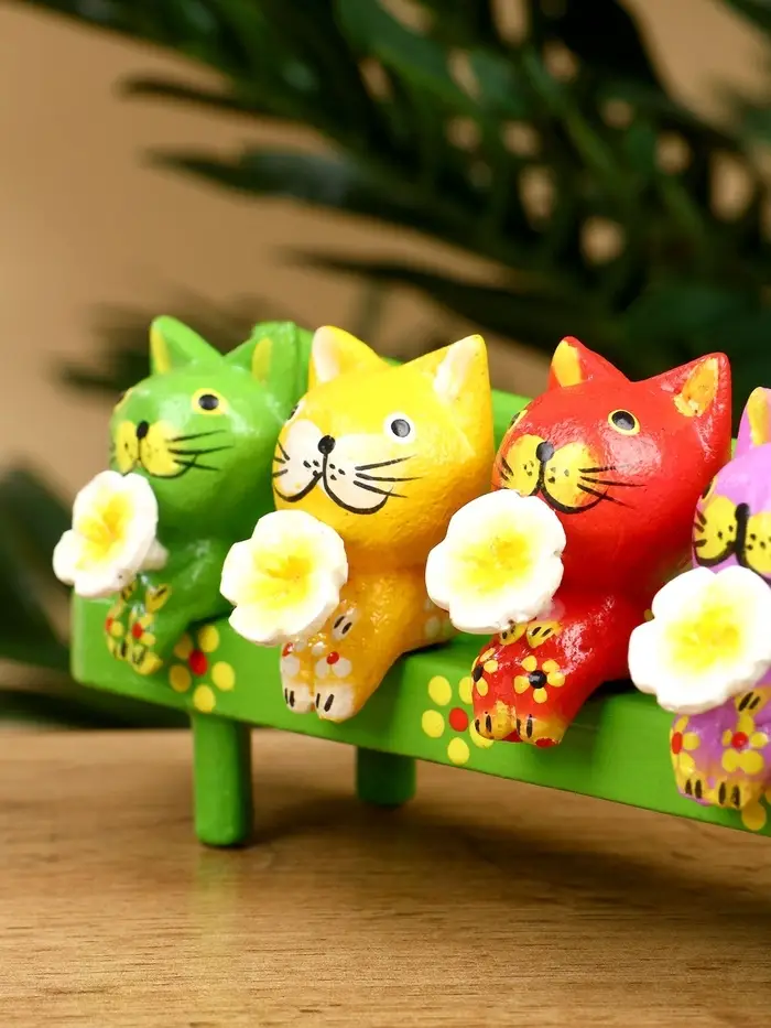 Сувенир "Котята на скамейке" дерево 19х8х6 см, цв. зелёный