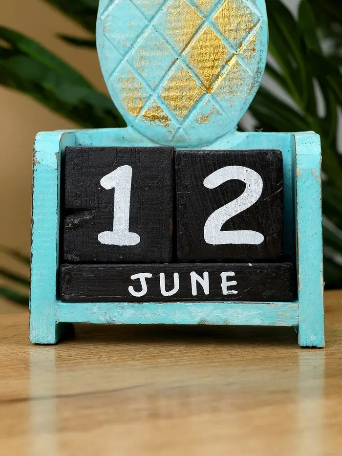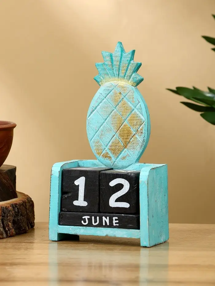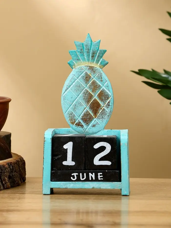 Календарь настольный "Ананас" дерево 11х5х16 см, цв. бирюзовый