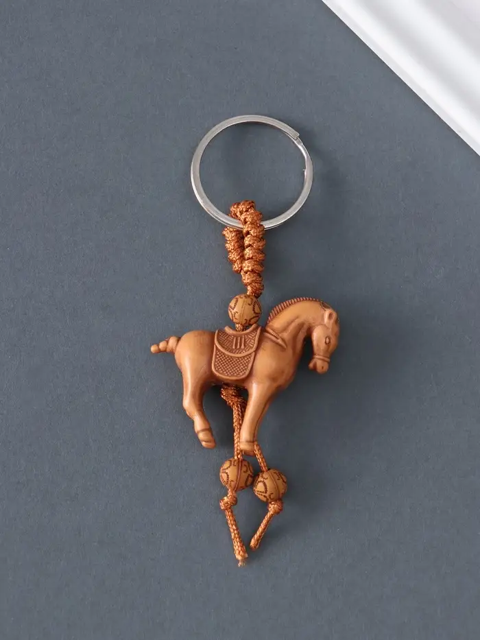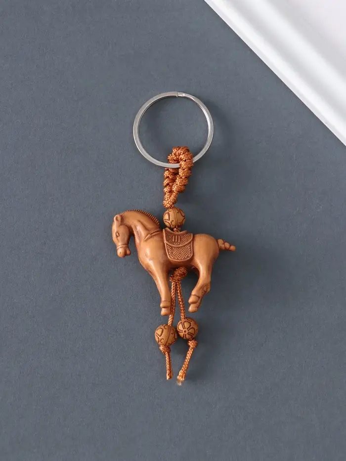 Брелок пластик, текстиль "Конь" под дерево 3,7х4,3х1,2 см