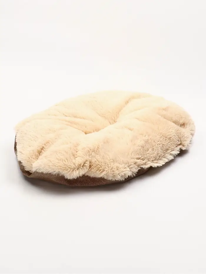 - Удобная овальная форма: Повторяет естественную позу сна кошек и собак мелких и средних пород. Такая конфигурация позволяет свернуться калачиком или вытянуться во весь рост.
