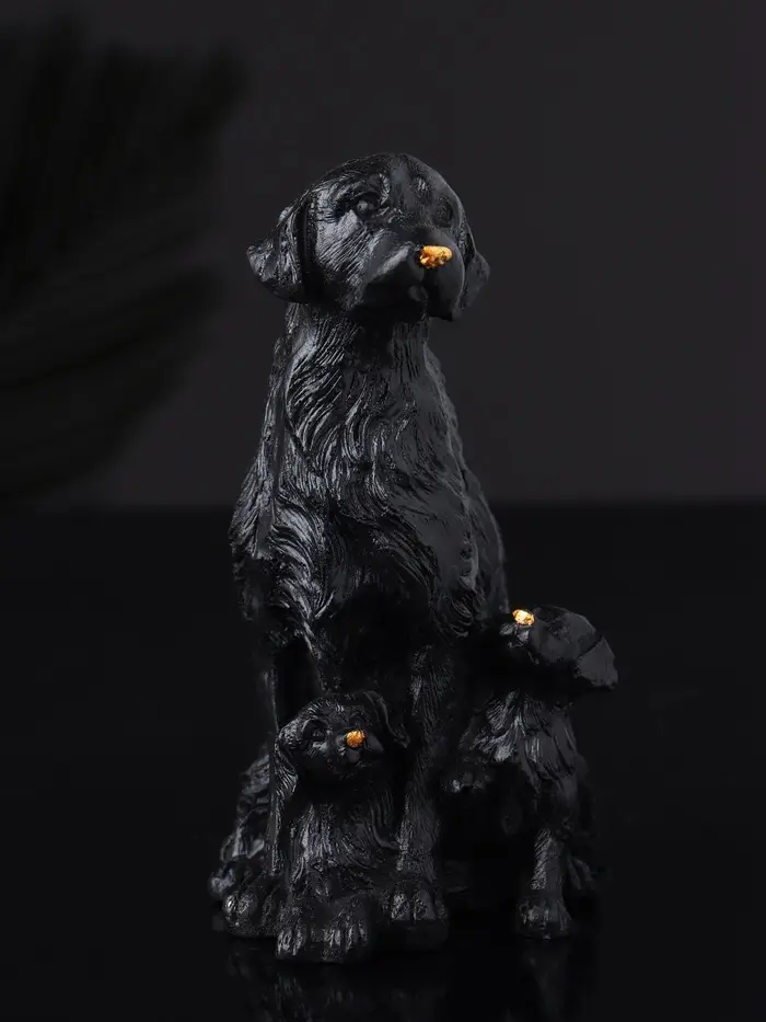 Фигура "Лабрадор с щенками", 10х7 см, черный