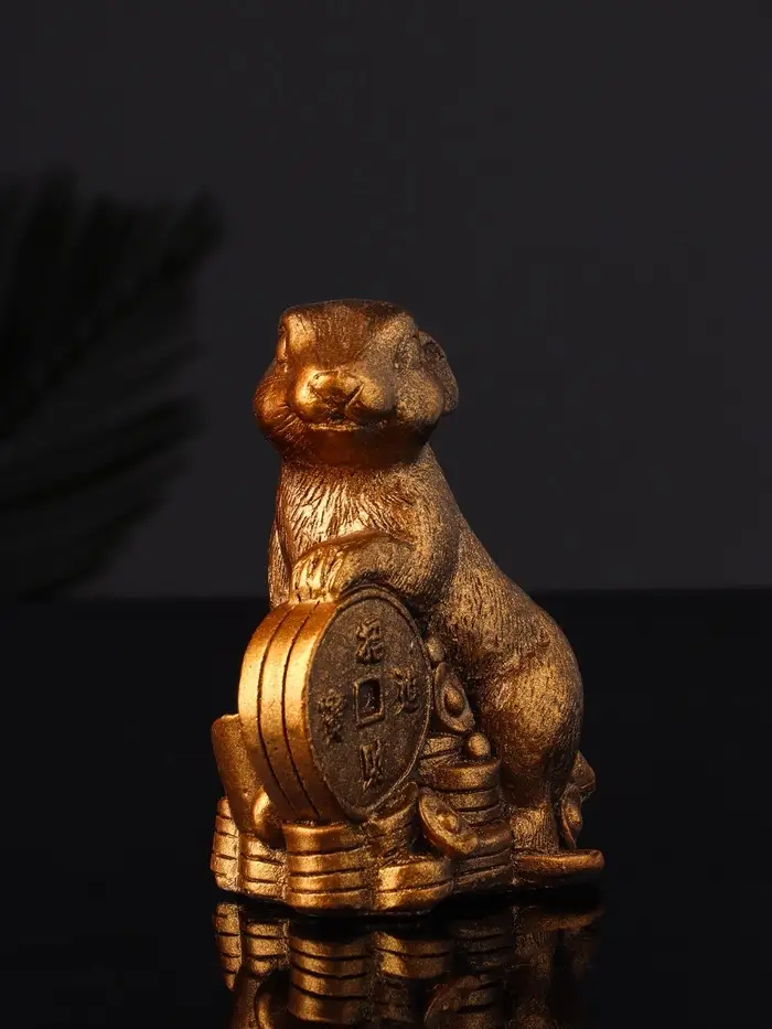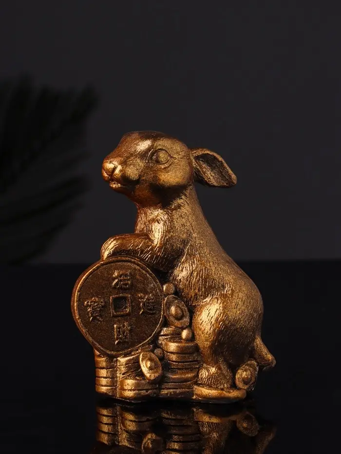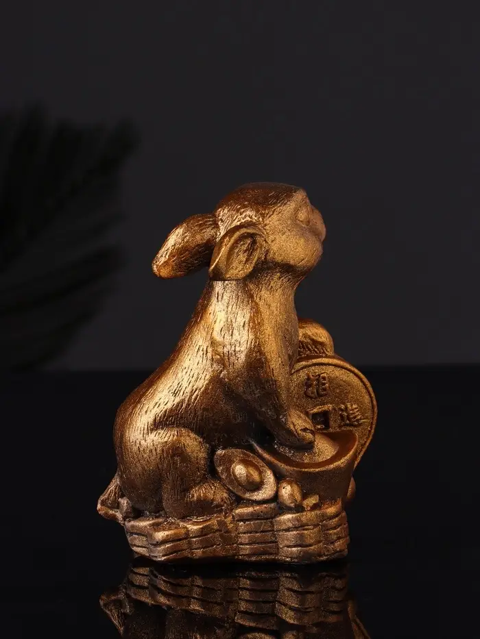 Набор "Кролик фен-шуй с подсвечником", 12х20 см, бронза