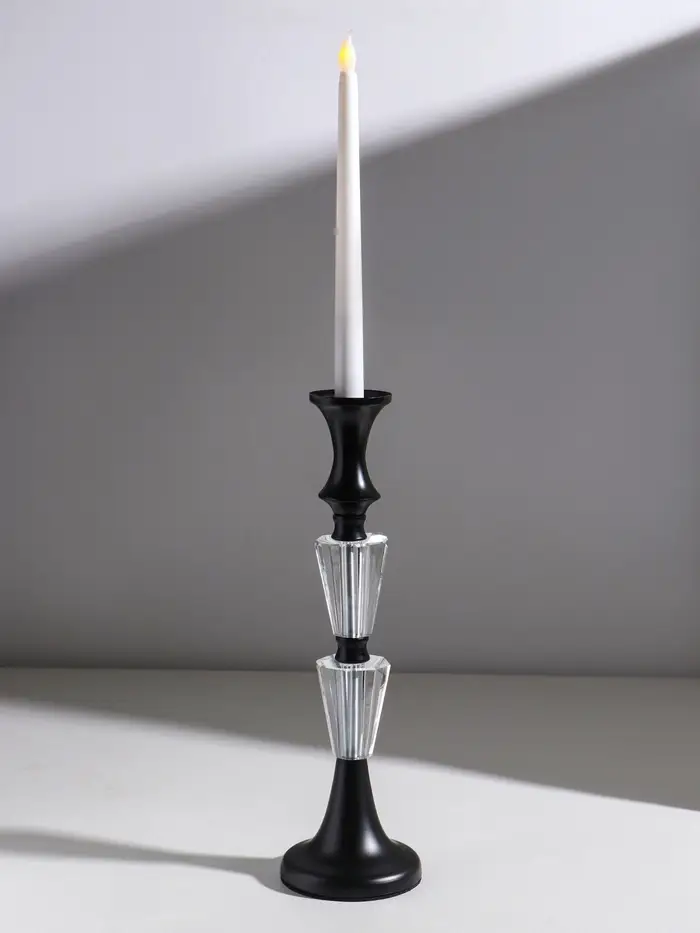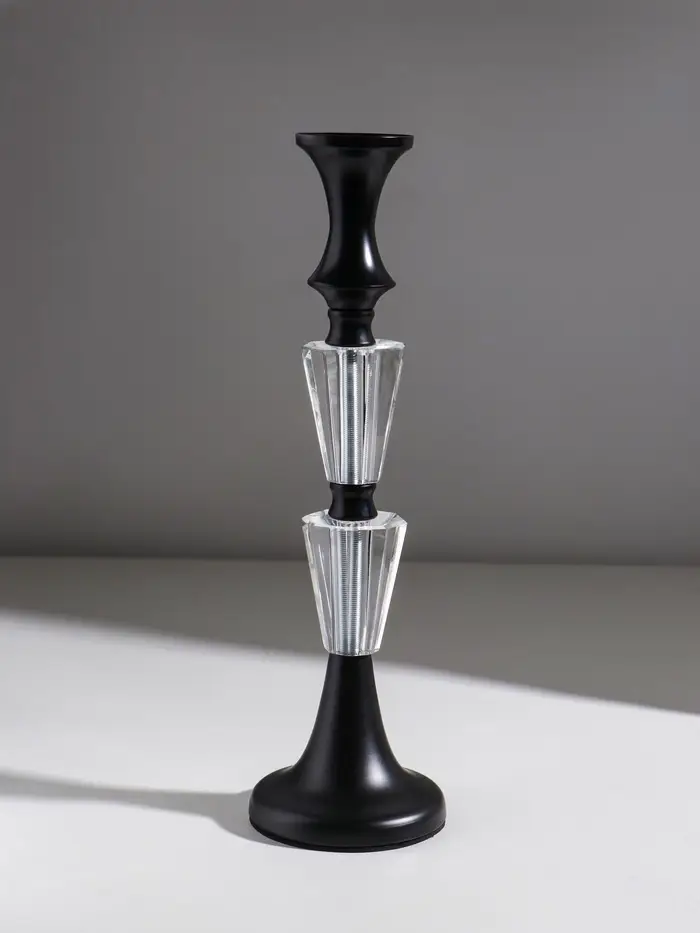 Подсвечник стекло, металл на 1 свечу "Кристалл. Классика" чёрный d=5 см 9,5х9,5х32,5 см