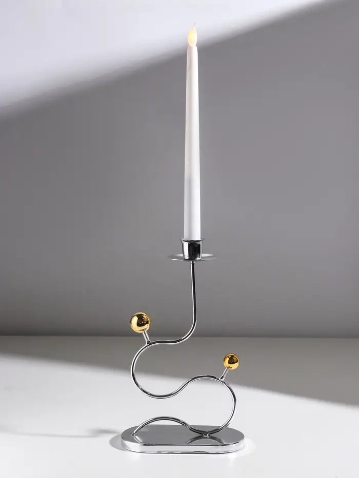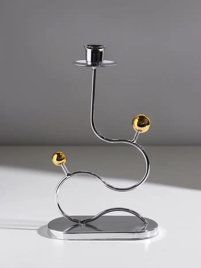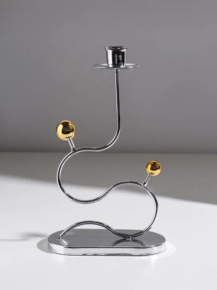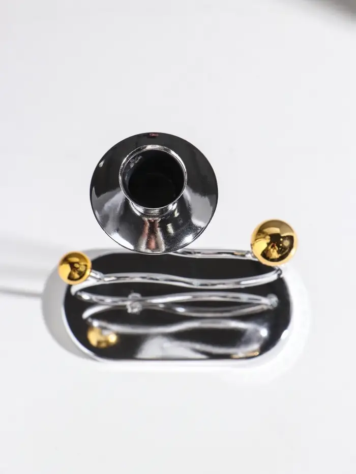 Подсвечник металл на 1 свечу "Линия и шарики" серебро с золотом d=2,5 см 14,5х7,5х26 см