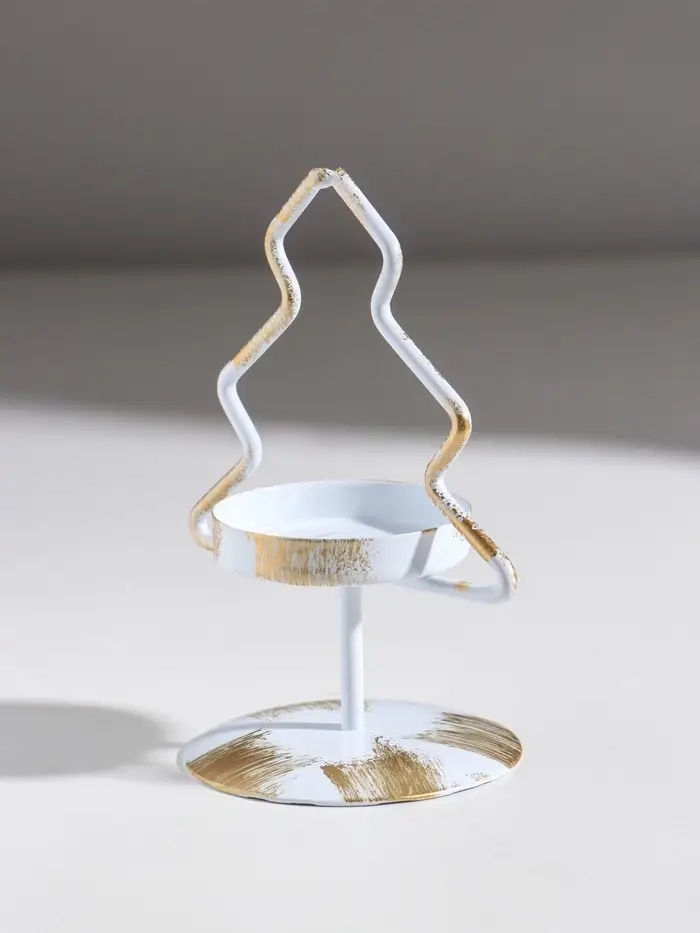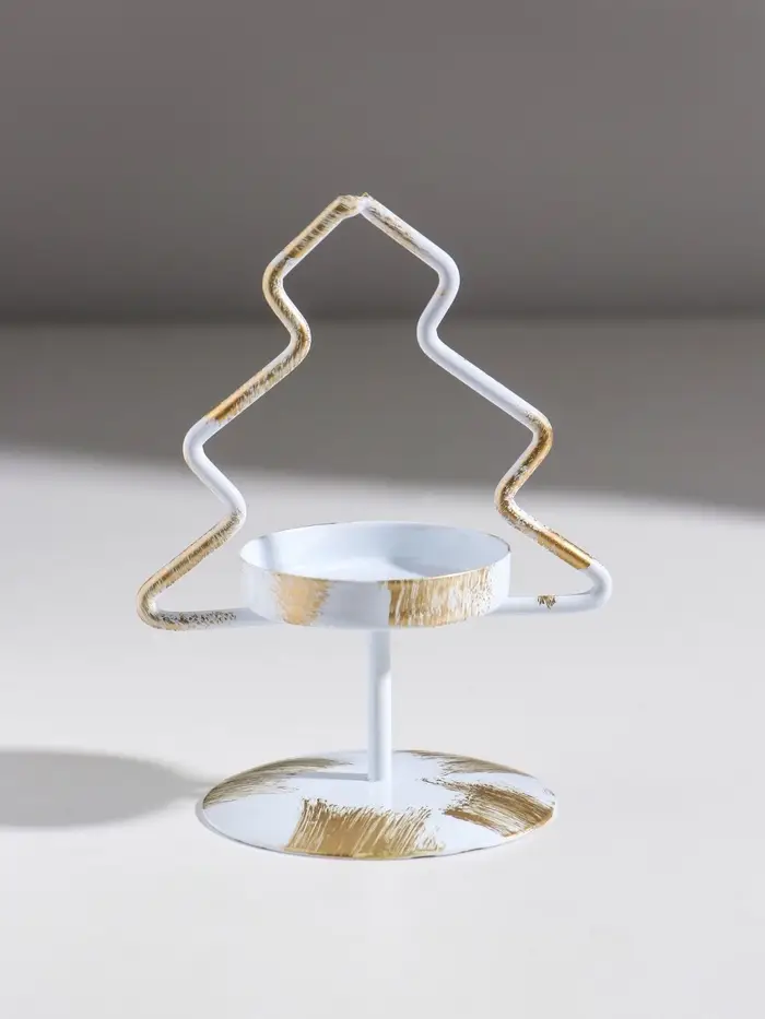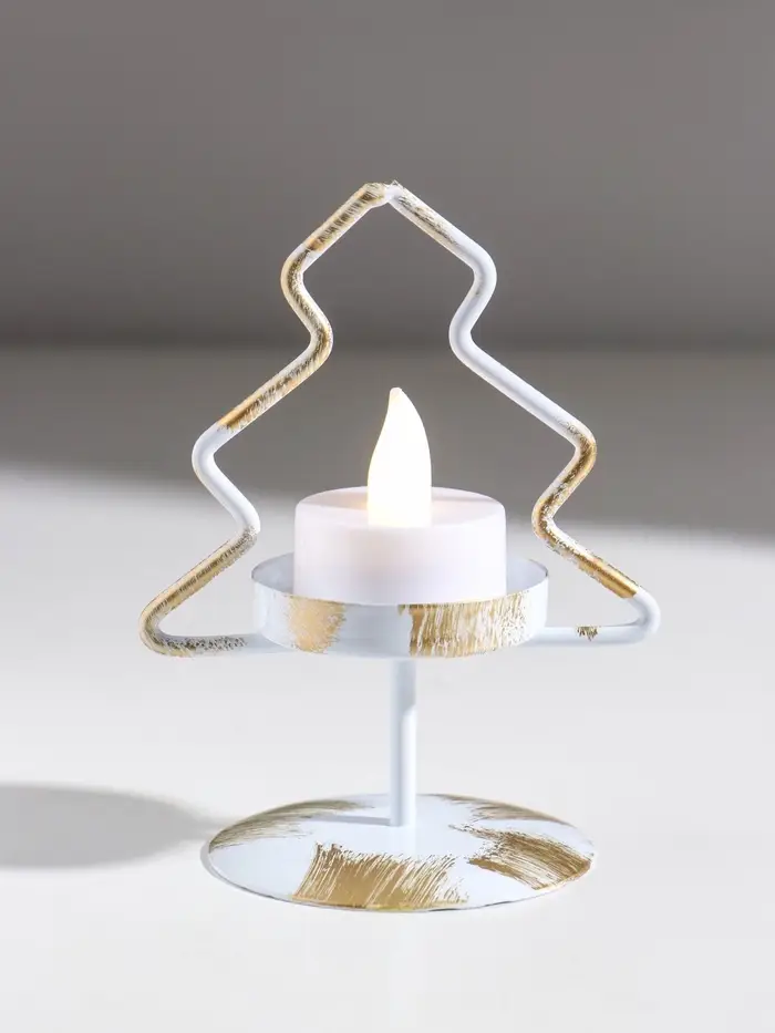 Подсвечник металл на 1 свечу "Ёлочка" белый с патиной d=5 см 7х7х12,5 см