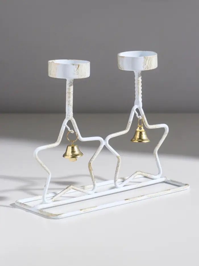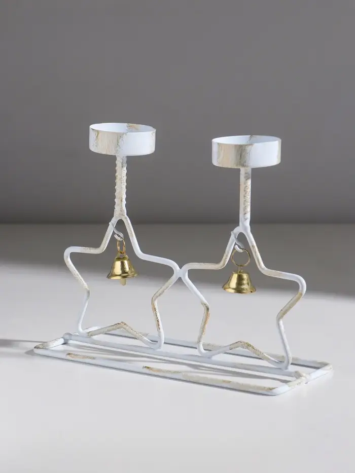 Подсвечник металл на 2 свечи "Две звезды" белый с патиной d=5 см 18,5х7,3х14,8 см