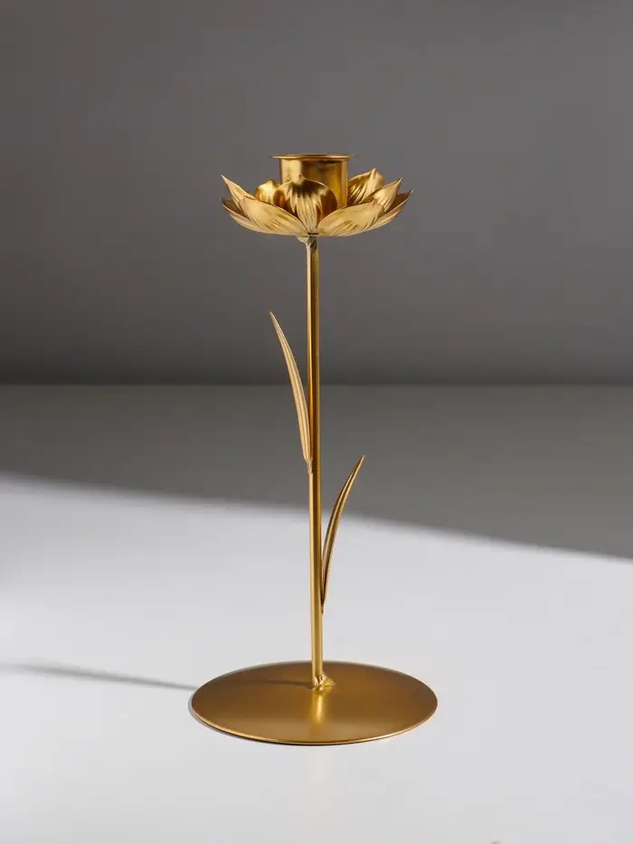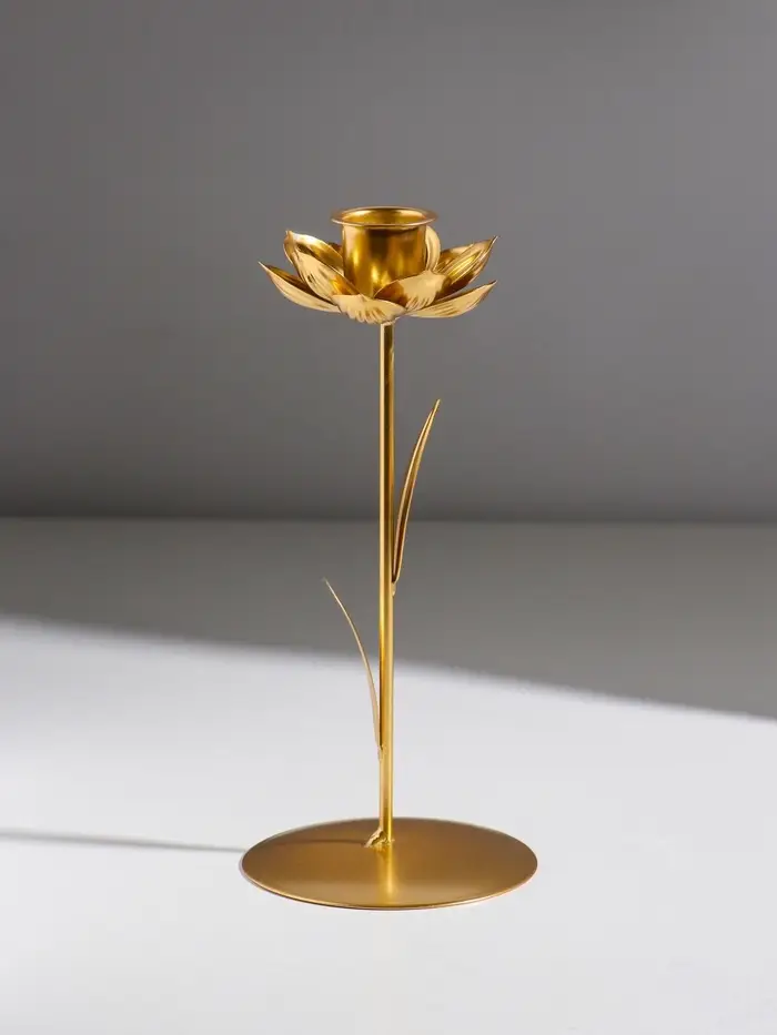 Подсвечник металл на 1 свечу "Жасмин" золото d=2,5 см 9х9х20,5 см