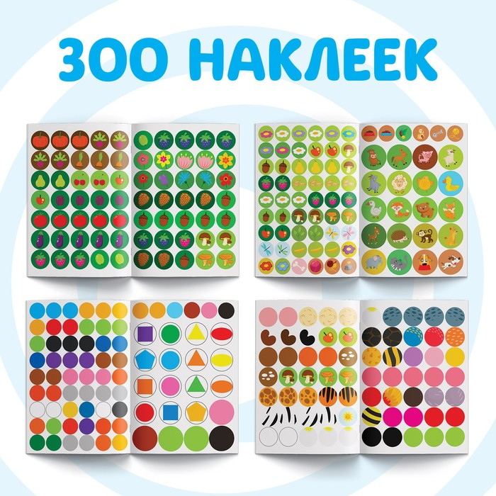 Набор «Наклейки-кружочки» представлен четырьмя книгами различной тематики: