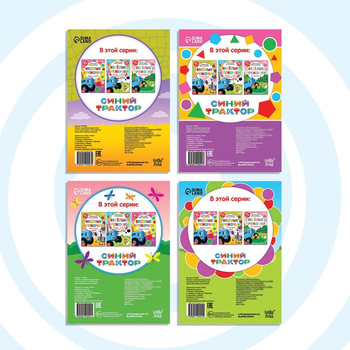 Набор книг с наклейками «Весёлые кружочки», 4 шт. по 16 стр., А5, Синий трактор
