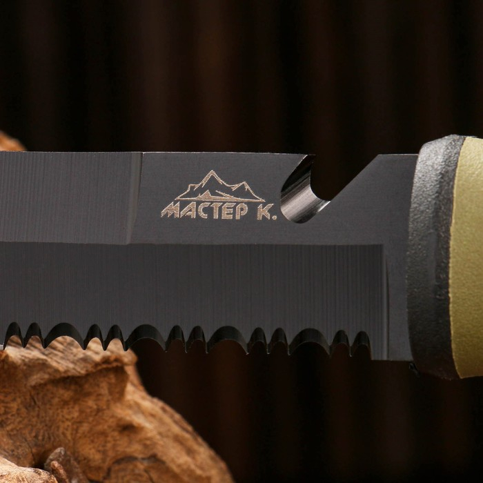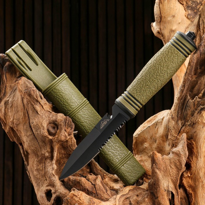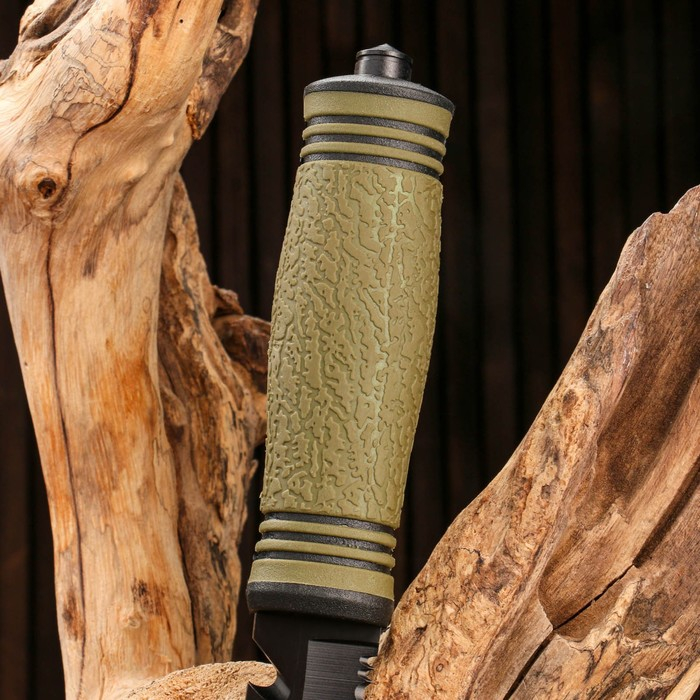 Нож тактический "Альфа" 23см, клинок 110мм/3мм, со стеклобоем и стропорезом, зеленый