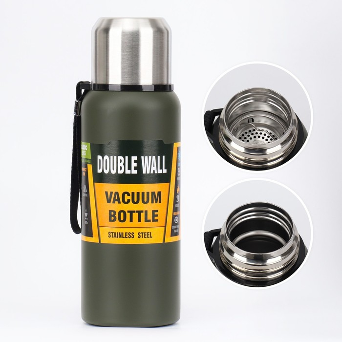 Термос, 600 мл, Путешествие "Мастер К.", с кружкой, сохраняет тепло 24 ч, с ситом